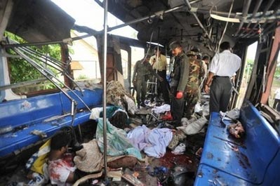 斯里蘭卡首都列車發生爆炸,造成數十人死傷。圖為爆炸現場。