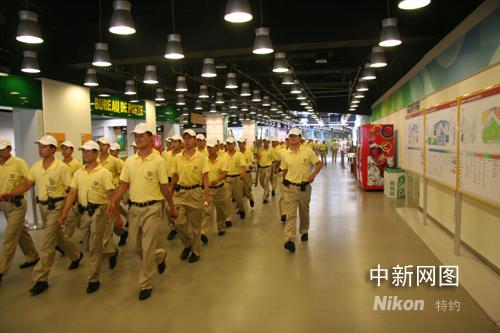 安保人員列隊進入主新聞中心進行排爆工作。攝影:宋方燦
