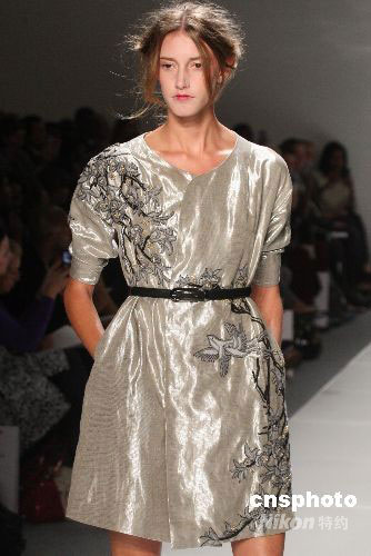 圖為世界名模參加中國女裝設計師羅崢作品展示。中新社發 錢興強 攝