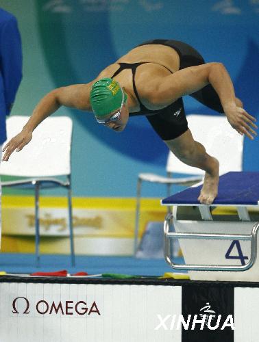南非選手納塔莉·杜托伊特在北京2008年殘奧會S9級女子50米自由泳決賽中。新華社記者丁旭攝
