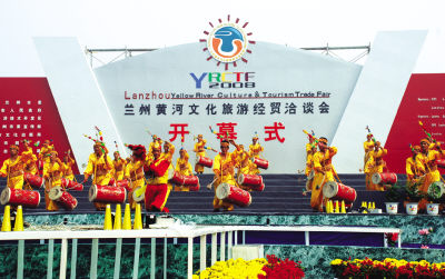 當(dāng)天的開(kāi)幕式現(xiàn)場(chǎng)洋溢著熱烈、喜慶的氛圍,飛天、羊皮筏子、水車、秦腔這些代表著黃河文化的元素傳達(dá)著本屆盛會(huì)的內(nèi)涵,噴泉、禮花、極具現(xiàn)代感的舞臺(tái)設(shè)計(jì)表達(dá)著蘭州人民繼續(xù)解放思想,深化改革開(kāi)放,努力實(shí)現(xiàn)蘭州經(jīng)濟(jì)又好又快發(fā)展的信心和決心。
