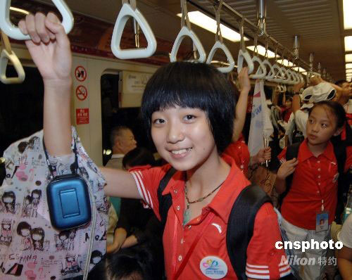 福建小營(yíng)員乘坐臺(tái)北捷運(yùn)、快樂體驗(yàn)臺(tái)北捷運(yùn)。中新社發(fā) 劉可耕 攝