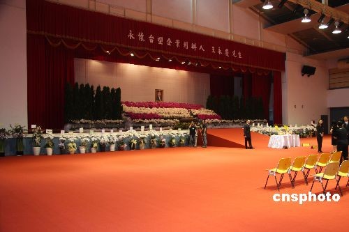 臺塑企業創辦人王永慶的遺體十七日由長榮班機運抵臺灣,靈堂設在桃園縣的長庚大學活動中心。圖為靈堂內景。從十八日上午開始靈堂開放各界吊唁。中新社發 耿軍 攝