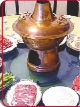 壹條龍經營涮羊肉已有220年的歷史,因其一直延續傳統的銅火鍋吃法,堪稱京城涮羊肉“正宗”,特點有四:一是選肉精,這里的內蒙古專供灘羊,粉肉白腰,香而不膻,肉質鮮美。二是加工細,選切羊肉時,要先在一層錫箔上放好天然冰,再把羊腿放在冰上碼好,肉上蓋油布,油布上在壓冰,這樣經過一天一夜的“壓肉”、“排酸”,切出來的肉片薄,自然打卷,形似刨花,又不失嫩香。肉切好后按黃瓜條、上腦、磨襠、小三叉、大三叉等不同部位裝盤,顧客可根據喜好選擇。三是作料全,除了辣椒油和醋之外,還有高級醬油、醬豆腐、小磨香油、糖蒜、米酒、酸菜等等。四是主食香,5公斤面要放1公斤芝麻,做出的燒餅多達18層,烙完后再上爐烘烤,外焦里嫩,香酥適口,加上一碗又細又勻的綠豆雜面,收盡油膩,那才叫實實在在的吃涮羊肉。壹條龍清真涮肉炭火鍋被評為“北京名火鍋”。