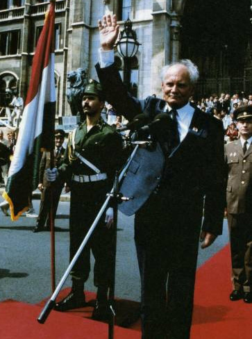 資料照片:1990年8月,根茨·阿爾巴德就任匈牙利共和國總統。