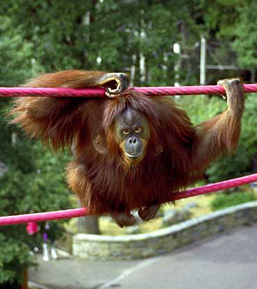 中新網2月20日電 據美國國家公共電臺網站報道,華盛頓動物園中的大猩猩邦尼是個模仿全能選手,不僅會拖地板擦窗戶,最近還學會了吹口哨。