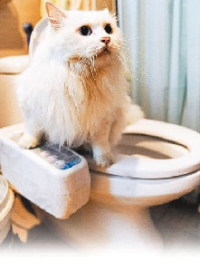 第4屆北京發明大賽參賽作品之一,可讓寵物在4至5周內學會使用馬桶排便。發明者畢榮華制作出一個培訓箱:在三層合一的座架上安裝帶有定位釘的座面,并將一個帶有管塞和蓋板(或排架)的漏斗裝在座面上。培訓過程中,逐漸加高座架、減少漏斗中的貓沙,加到第三層時與馬桶同高,最后將座面移到馬桶上并去掉漏斗,不再使用貓沙,這時貓咪就會習慣蹲坐在馬桶上排便。