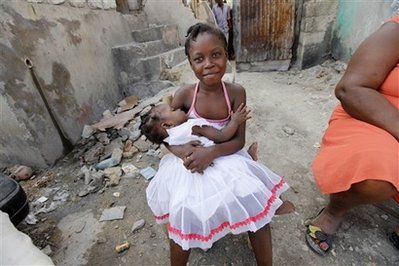 在太子港一所孤兒院,一百二十五位小朋友中有五十人不幸喪生。另一所孤兒院現(xiàn)在成了臨時庇護(hù)中心,二十個孩子雖然有地方暫時棲身,但是物資極度缺乏,F(xiàn)在海地至少二十萬名孤兒急需外界援助,在西方國家有許多想要領(lǐng)養(yǎng)的民眾卻是苦苦等候。
