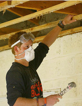 身穿體恤衫、斜紋棉布褲,腳穿結實膠鞋的哈里,像其他人一樣,手推獨輪車,耐心排隊等候裝水泥,然后經過崎嶇不平的地形,將水泥倒進新建學校的基槽中。他還幫忙挖溝,修建特殊學校有利于殘疾兒童出入的斜坡。戴上口罩和護目鏡,哈里王子還能用錘子將鋼釘釘進學校食堂頂棚的木板中。