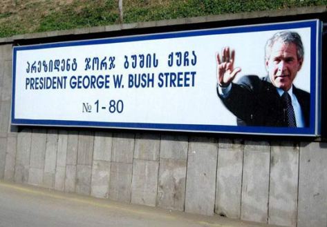 近日,有關格魯吉亞首都第比利斯有條街道名字叫“喬治·布什總統路”的新聞,在互聯網上不徑而走。據說這條街是2005年美國總統布什訪問第比利斯時命名的。當年沒有太知名的事情,今天傳遍世界。布什揮手的大廣告牌立在這條街的顯著位置,圖像和視頻被各種博客和新聞網站迅速傳播開來。