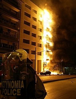 12月9日,希臘騷亂升級,雅典恍如“戰(zhàn)場”。