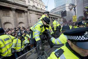 據英國《獨立報》報道,在G20峰會即將召開的前夕,大批示威者涌上倫敦街頭,其中一些人甚至拿起了棍棒,同警察發生了肢體沖突。英國央行遭圍堵,蘇格蘭皇家銀行的辦公設備被砸爛,趨向暴力的抗議活動已經令倫敦亂作一團。