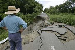 日本強(qiáng)烈地震導(dǎo)致公路路面嚴(yán)重開(kāi)裂。