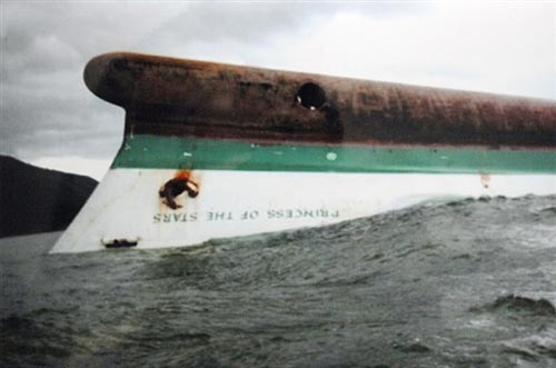 兩萬(wàn)三千噸的“群星公主”號(hào)二十日自馬尼拉港航向菲律賓中部的宿務(wù)省,因遭遇風(fēng)神臺(tái)風(fēng)吹襲,而于二十一日中午在羅布倫省海域翻覆沉沒(méi),根據(jù)船客登記簿,全船載有七百四十七人,包括許多兒童。