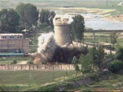 圖:朝鮮當?shù)貢r間17時05分炸毀寧邊核設(shè)施冷卻塔