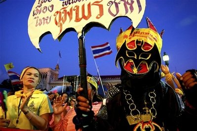 泰國的反政府示威者誓要推翻總理沙馬政府,對于緊急狀態令都嗤之以鼻,他們相信泰王受到威脅,愿為泰王而死。