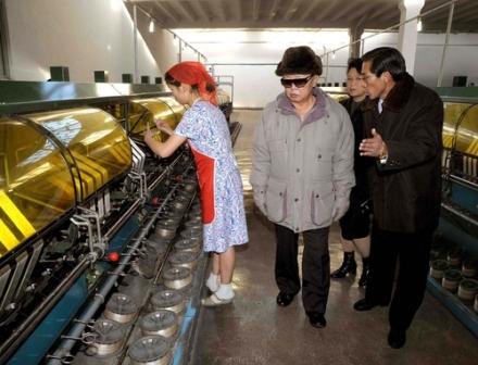 金正日第一站來到了平壤紡紗工廠,他走訪了卷絲、紡紗等多個車間,并詳細詢問了絲綢制造的技術更新等問題。