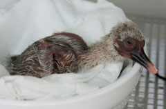 據悉,這一對朱鹮上月初和中旬分別產下了3枚和6枚卵。在首批3枚卵中,兩枚已受精,一枚沒有受精。但是其中的兩枚則在雄朱鹮的打擾下,只能移往孵化基地進行人工孵化。此次繁殖成功的就是上一次被移往孵化基地的兩枚卵之一,另一枚未能繁殖成功。