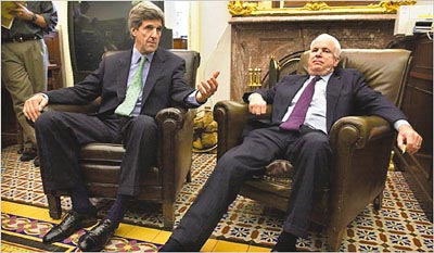 中新網3月25日電 《紐約時報》揭發代表美國共和黨參選總統的麥凱恩,曾于2000年競逐提名失敗后心灰意冷,考慮改投民主黨。2004年大選中,他更派人與民主黨的總統參選人克里會面,商討要成為對方的副總統,他對共和黨的忠誠成疑。