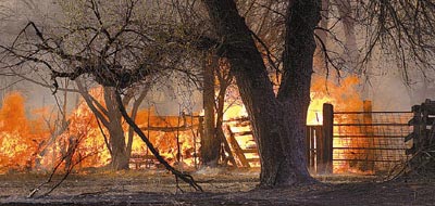 奧德韋附近的東南部平原,風(fēng)勢持續(xù)疾勁,濕度偏低,氣溫達到攝氏26.7至31.7度。卡森堡接近科羅拉多斯普林斯的山火燒毀約3642公頃土地。