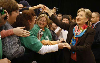 據(jù)香港《大公報》報道,位于波士頓的薩福克大學(xué)二十一日所公布的調(diào)查結(jié)果顯示,經(jīng)過數(shù)星期的全力拉票,前第一夫人希拉里在有可能去投票的選民當中,取得百分之五十二支持,高于爭取成為美國首位黑人總統(tǒng)的伊利諾伊州參議員奧巴馬所得的百分之四十二。