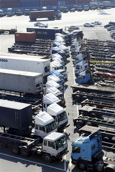 本周早些時候,工會領(lǐng)導(dǎo)人員與政府之間進(jìn)行了幾次磋商,但是始終沒有就司機(jī)們的要求達(dá)成共識。雖然罷工只進(jìn)行了幾天,但已經(jīng)嚴(yán)重削弱韓國港口的吞吐量,對出口商造成巨大損失。 2003年5月,大約6000名卡車司機(jī)舉行了為期兩周的罷工行動,總共對出口商造成5億美元損失。