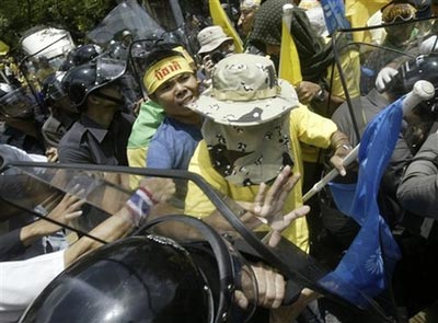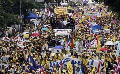 此次反政府活動是由泰國人民民主聯(lián)盟(民盟)組織的。示威者和警察的對峙使得總理府周邊區(qū)域陷入混亂,道路的交通完全中斷,學校停課,總理府各部門不得不放假一天。