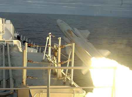 中國海軍戰(zhàn)艦發(fā)射俄制日炙反艦導(dǎo)彈(資料圖)
