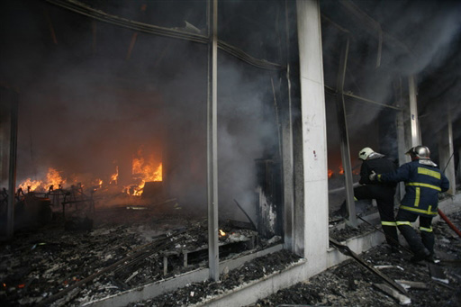 7日上午,雅典市區內的游行示威進一步升級,并演變為騷亂。數千名示威者向警察投擲石塊、燃燒瓶,并放火燒毀市區內的汽車和商店、銀行等設施,警方則發射催淚彈驅散人群。