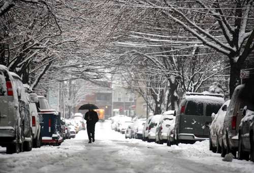 紐約市政府自昨天晚間即嚴陣以待,二十日上午十時前后紐約市開始飄雪,紛飛的雪花在路面累積的同時,市區(qū)各地已見到掃雪車在清理道路。紐約市長彭博已下令約二千名清潔工人臨時調(diào)班清理路上積雪。午間,彭博不但親自到道路清潔隊去視察,同時也透過媒體呼吁民眾在風(fēng)雪天少開車、改搭乘大眾捷運交通工具。