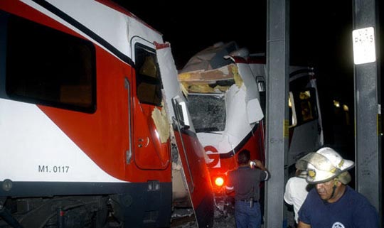據(jù)來(lái)自墨西哥城的消息,今天凌晨在墨西哥城郊區(qū)兩列火車相撞,至少造成80人受傷,有16人被壓在撞擊后火車殘?bào)w中,在當(dāng)?shù)卦斐苫靵y。這是官方宣布的。