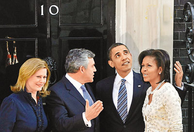 米歇爾陪同丈夫到唐寧街做的第一件事,便是與英國(guó)首相伉儷共進(jìn)早餐。