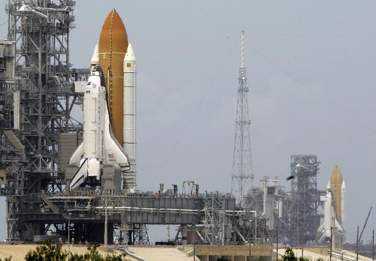但另一艘航天飛機(jī)奮進(jìn)號(hào) (Endeavour)18日也移入39B發(fā)射臺(tái),距離亞特蘭提斯號(hào)準(zhǔn)備升空的39A發(fā)射臺(tái)不過3公里多;NASA表示,奮進(jìn)號(hào)的所有準(zhǔn)備作業(yè)都與正式發(fā)射作業(yè)無異,即使它從事救援任務(wù)的可能性并不高。報(bào)道說這是太空史上的首次。