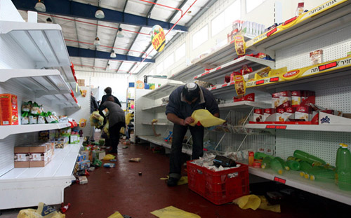 據以色列《國土報》3月6日報道,經濟危機重創以色列經濟,由此引發的負面影響已經開始向以色列各行業蔓延,一些連鎖超市因虧損嚴重陸續倒閉。日前以色列北部地區一家超市遭債主、欠薪員工以及過路人的哄搶,里面東西被搬空。