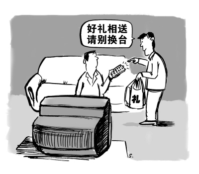 我選了“收買”條件最好的一家衛視臺節目,每天一開電視,就鎖定這家頻道,堅持了起碼大半年。本來,家里最喜歡看本地電視臺,可人家電視臺禮金高,收了人家的錢,拿了人家的禮,我也要負責任的。再說了,現在電視臺節目也差不多,一個電視劇幾家同時播,看哪臺不都差不多?而且,人家的節目也不錯。