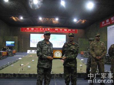 7月8日,“友誼2010中巴反恐聯合訓練”正式進入綜合演練階段。下午15時左右,聯合指揮所演練開始。演練設計的背景是,對潛入中巴邊境地區實施襲擊破壞的國際恐怖分子進行聯合打擊。在近一小時的演練中,雙方指揮員根據上級決心,建立了聯合指揮機構,圍繞著搜集的情報,進行分析判斷,研究定下聯合反恐作戰的決心。通過演練,提高了雙方指揮員聯合組織策劃反恐作戰的能力。7月9日將進行聯合反恐的實兵實彈演練階段。(記者李琳)