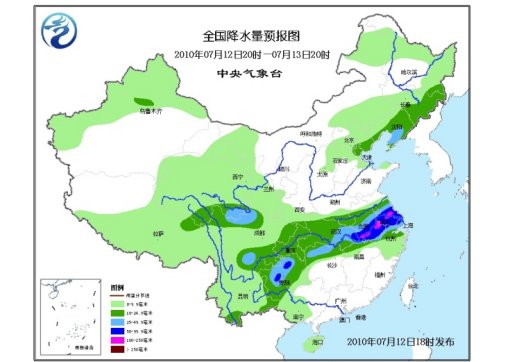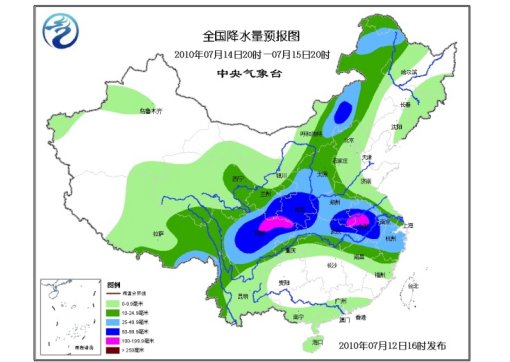 中新網7月12日電 據中央氣象臺網站消息,未來三天,青藏高原東部及其以東大部地區有一次明顯降水天氣過程,其中,黃淮西部、江漢、江淮、江南北部、四川盆地等地有大到暴雨,部分地區有大暴雨;青海東南部、內蒙古中東部、黑龍江西北部、吉林東部、山西西南部、陜西大部、甘肅南部和東部、貴州大部、西藏東南部、云南西部和南部等地的部分地區有大雨,局地有暴雨;上述部分地區并伴有短時雷雨大風或冰雹等強對流天氣。