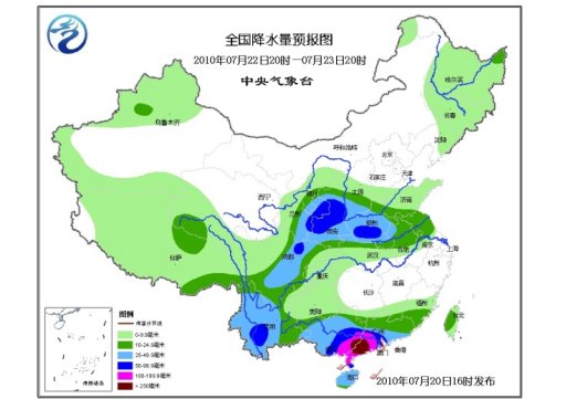 22日20時(shí)至23日20時(shí),新疆南部山區(qū)和天山以北地區(qū)、青海西南部、西藏、內(nèi)蒙古東北部、東北大部、甘肅東部、寧夏、陜西、華北西部和南部、黃淮、江淮、江漢、華南大部、西南地區(qū)大部有小到中雨或陣雨,其中,四川中部和北部、甘肅東部、陜西中南部、山西西南部、河南大部、湖北西北部、廣東南部、廣西大部、海南、云南中西部等地有大雨或暴雨;廣東西南部、廣西東南部等地有大暴雨,局部特大暴雨;上述地區(qū)局部并伴有短時(shí)雷雨大風(fēng)等強(qiáng)對(duì)流天氣。新新疆中部、內(nèi)蒙古西部等地有4~6級(jí)風(fēng)。受熱帶風(fēng)暴“燦都”的影響,南海北部海域?qū)⒂?~9級(jí)大風(fēng),“燦都”中心經(jīng)過(guò)的附近海面的風(fēng)力可達(dá)10~11級(jí),部分海域陣風(fēng)可達(dá)12級(jí)。