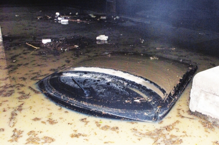 昨日凌晨1點過,還在睡夢中的張先生被窗外的雷鳴聲驚醒,接著他聽到樓下傳來喊叫,“車庫被淹了,快把外面的車開走。”張先生猛地從床上爬起來,火急火燎地跑向車庫時,發(fā)現(xiàn)雨下不夠半小時,車庫的積水已經(jīng)漲到3米深,里面的7輛汽車全部被淹沒頂。直到昨日下午7時,車庫內(nèi)的淤泥還未被清理干凈。 (記者 薛小龍 攝影 呂甲 實習生 周烜)