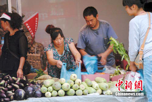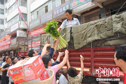 中新網舟曲8月20日電 (記者 侯志紅) “從14日下午開始我們我們已經有蔬菜上市了,但目前因道路受到限制,疏菜運輸還比較困難,因此, 疏菜成了舟曲居民的搶手貨。”舟曲縣政府附近一位菜灘的女老告訴記者。