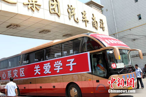 30日上午,第三批轉運的26輛旅游大巴從舟曲運載1056名學生和老師60名,行至蘭州后仍安置在蘭州科技外語學校、甘肅省銀行學校和財政學校。