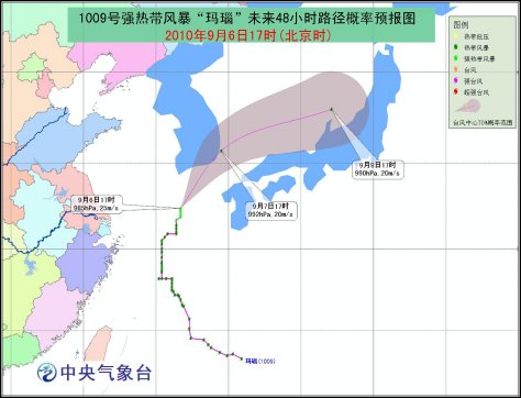 由于“瑪瑙”已遠離我國近海,對我國海區的影響趨于減弱,因此解除臺風藍色預警。但受“瑪瑙”、西南季風和南下冷空氣的共同影響,9月6日20時到7日20時,渤海灣、渤海海峽、黃海北部部分海域、黃海中部和南部的偏東海域、東海東北部、臺灣以東洋面將有6-8級大風,“瑪瑙”中心經過的附近海域或地區的風力可達9-10級,陣風11-12級。