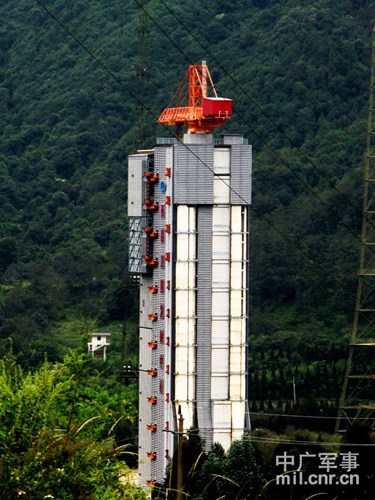 正環抱著“嫦娥二號”衛星及火箭的2號塔架 中廣軍事記者呂錫成攝