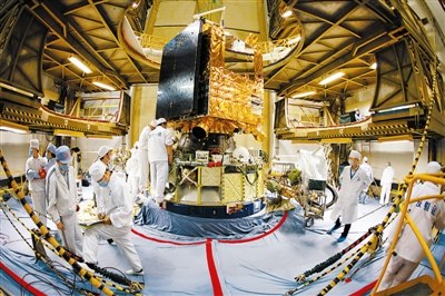 9月20日,“嫦娥二號”探月衛星與“長征三號丙”運載火箭實現星箭對接。圖為星箭對接現場。本報記者 張曉祺攝