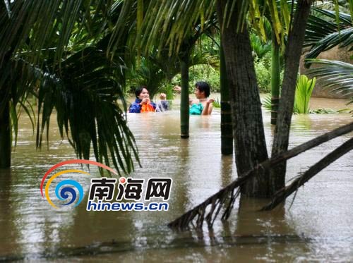 10月7日上午,瓊海市多數(shù)地區(qū)仍浸泡在洪水中,部分村民在被水圍困村莊地勢較高處“生活”,村民足不出戶可打漁。