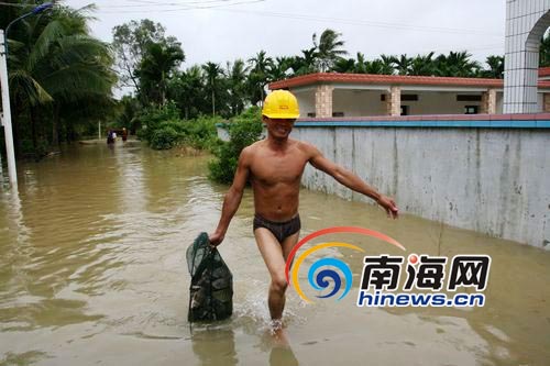 上午11點在中原鎮(zhèn)石頭村前看到,該村被洪水圍困,房屋浸泡在水中,絕大多數(shù)的檳榔樹僅在水中露出了個樹尖,多數(shù)房屋的只有屋頂露在水上。該村村口的群眾正在使用漁網(wǎng)等漁具捕魚。一男子介紹,他們是這些村的村民,水中現(xiàn)在有很多福壽魚,可以撈到很多魚。許多村民在村內(nèi)地勢較高的屋頂上避水,估計是擔心自家的財物丟失、受損等,不愿出來。村外的村民每天定時給他們送去方便面、餅干等食物。