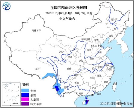 中新網10月8日電 中央氣象臺10月8日10時繼續發布暴雨藍色預警:10月8日14時到9日14時,海南中東部、雷州半島、云南西部、西藏東南部等地有大雨或暴雨,其中海南東部的部分地區有大暴雨;上述地區局部伴有短時雷雨大風等強對流天氣。