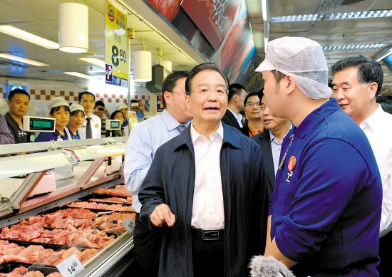 溫家寶邊看邊問,了解物價變化對市民生活的影響。他說,市場供求和物價關系群眾的切身利益,必須高度重視。國務院正在擬定措施,抑制價格過快上漲。他叮囑廣州市有關負責人要千方百計保持供貨渠道暢通,保證市場供應,加強監(jiān)管,維護市場秩序。
