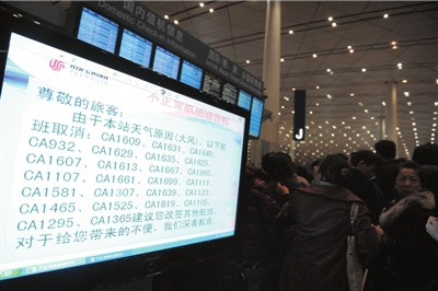 昨天下午,大量乘客滯留在候機廳內,延誤通知不斷重播,多數乘客表示不滿。乘客孫女士氣憤地說,他們一行20人從北京飛往上海,原定上午9點半起飛,已經在此處等候了8個小時,“剛一問,對方說可能要明天起飛”,此話引起眾人不滿,多人要求機場方解決食宿問題,但對方始終稱“需要協調”。