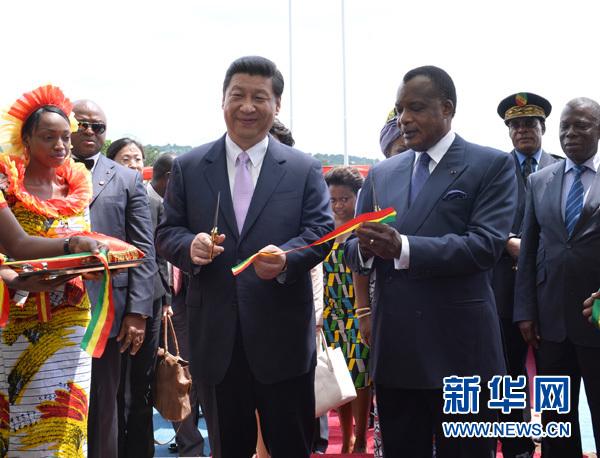 鼓樂齊鳴,歡歌快舞,眾多當地民眾和官員齊聚見證這項惠民工程落成,抒發對中剛友誼的情感。醫院大樓上懸掛著巨幅中剛兩國國旗。剛果參議院議長伊圖、國民議會議長孔巴、全體政府部長、布拉柴維爾省省長、軍方高級將領、社會各界人士代表及30多位外國駐剛使節等出席。習近平在薩蘇陪同下檢閱儀仗隊,隨后在主席臺就坐。